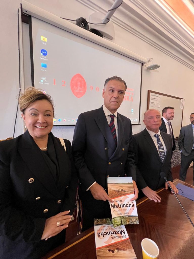 A prefeita de Matrinchã, Ivânia Fernandes, participou nesta terça-feira (29) de uma importante palestra sobre o Direito Eleitoral brasileiro na Faculdade de Direito da Universidade de Coimbra, em Portugal. O evento, promovido a convite do professor doutor Ibsen Noronha, contou com a presença do presidente do Tribunal Regional Eleitoral de Goiás (TRE-GO), desembargador Luiz Cláudio Veiga Braga, que conduziu a exposição principal.